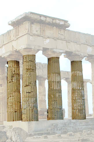 Die Säulen sind meist aus einzelnen Trommeln aufeinandergeschichtet, selten monolithisch. Die Kanneluren wurden erst angebracht, wenn die Trommeln ihre endgültige Lage am Bau hatten.