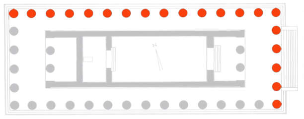 Zahlenverhältnis der Säulen der Vorderseite zu der der Langseite. Schwankt zwischen 6: 12 bis 6 : 15.