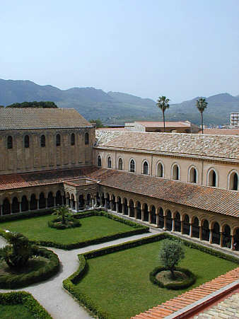 Quadrat von 47 x 47 m mit je 26 Arkaden mit Säulenpaaren in den Seiten. Die 228 Doppelsäulen tragen insgesamt 114 Doppelkapitelle mit religiösen und weltlichen Darstellungen aus allen Bereichen des Lebens.