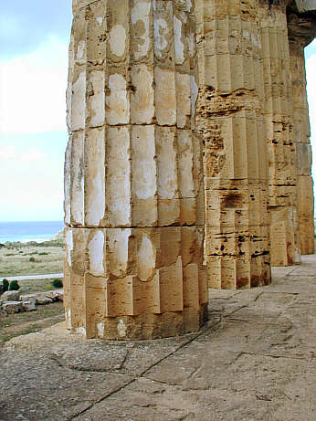 Putzreste an der vorderen Säule, dahinter Restaurierungen der Neuaufstellung 1957.