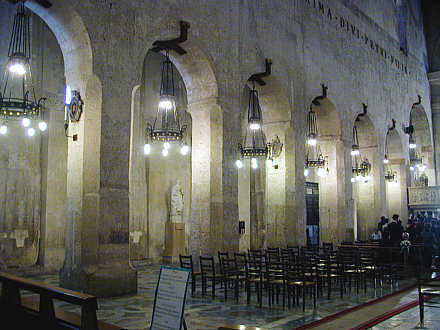 Mittelschiff nach Norden mit den in die alte Cellawand eingebrochenen Arkaden der frühchristlichen Basilika