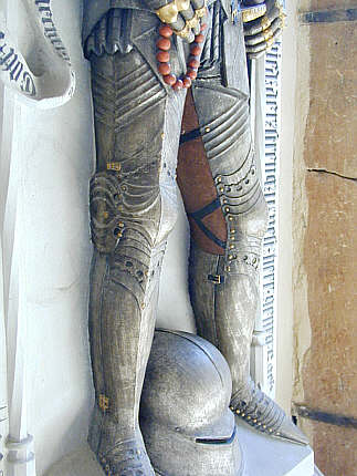 Ein stolzer Ritter in seiner RüstungGrabmal des Ritters Georg Sack: Großaufnahme: Oberschenkelschutz mit Bändern |