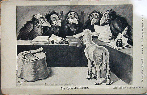 | Erläutere den Begriff "Judstiz" Beschreibe die Situation, in der sich das Lamm befindet. Formuliere die Kritik, die aus dieser Darstellung deutlich wird. |