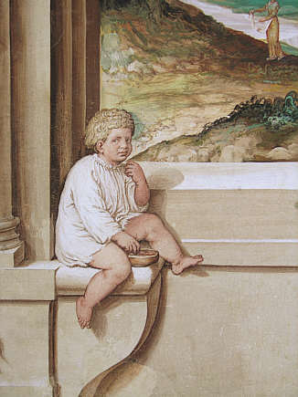 Fresken von Gualtiero Padovana Der Raumhat seinen Namen von einem in einer Nische gemalten blondgelockten Putto