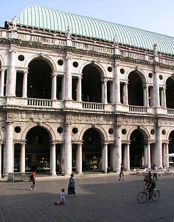 Die Verwendung der toskanischen Säulenordnung im Erdgeschoss, der ionischen Ordnung im Obergeschoss entspricht der von Vitruv überlieferten klassischen römischen Säulenordnung, wie sie Palladio auch am Kolosseum in Rom studieren konnte.