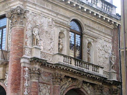 Marmorrelief an der Schmalseite zur Erinnerung an die Seeschlacht von Lepanto (1571) gegen die Flotte des Osmanischen Reiches, die letzte Seeschlacht, die Venedig gewonnen hatte.
