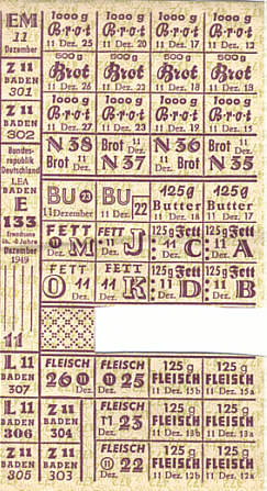 Lebensmittelmarken für November und Dezember 1949