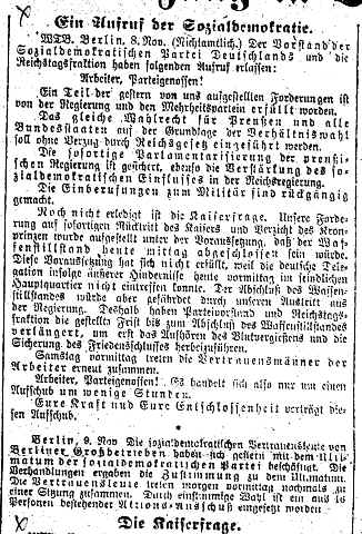 Volksstimme Mannheim, 9.11.1918