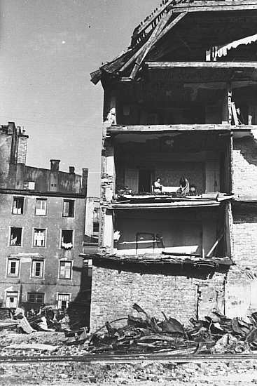 Viele Menschen lebten in den Städten noch lange nach Kriegsende unter unwürdigen Bedingungen. In diesem Münchner Haus schien das Leben 1946 ganz normal weiterzugehen – nur ohne Außenwand.