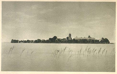Klosterinsel Frauenchiemsee von der Krautinsel aus gesehen. Postkarte, 1922