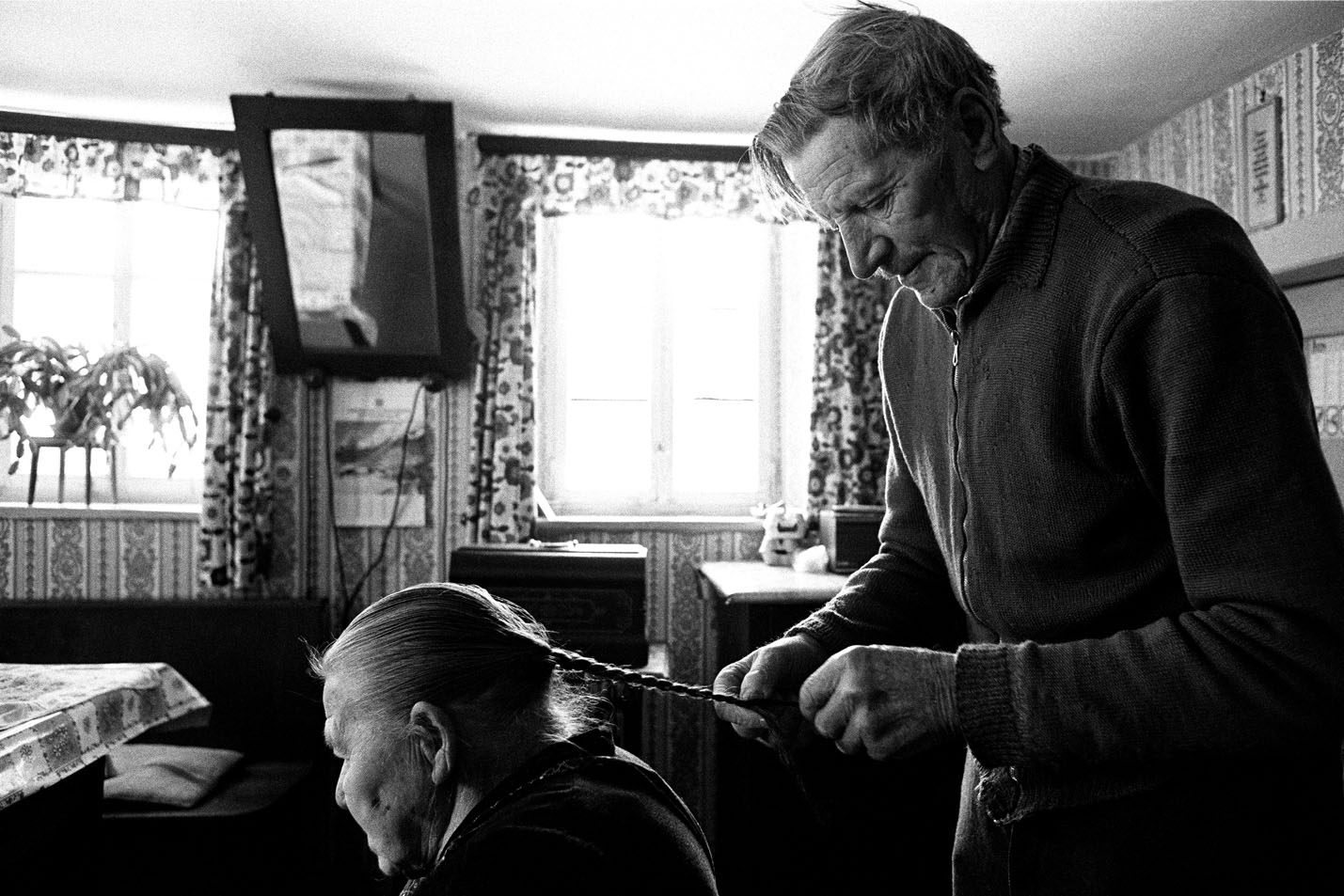 Roland Bauer spricht intensiv mit den Menschen, die er besucht, es gelingt ihm, engen Kontakt mit seinen Protagonisten aufzunehmen. Deswegen teilen sie sich ihm gerne mit, und das spürt man auf seinen Bildern. Er macht sich Gedanken über die Menschen seiner Heimat.