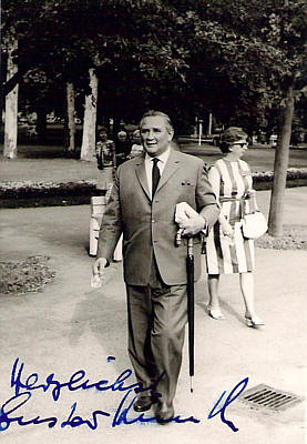oben: Mai 1921: Reichspräsident Friedrich Ebert (Mitte), Ministerialdirektor Dr. Otto Meissner (rechts) und Kurarzt Dr. Hermann Haug (links) in Mergentheim links: Gustav Knuth im Kurpark Bad Mergentheim (Stadtarchiv, Sammlung Spellbrink)
