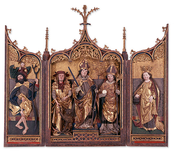 Entsprechend steht die hochkarätige Leihgabe vor dem Riemenschneider-Saal und kündet dort von den Aufgaben des Flügelaltars, von seiner Wandelbarkeit, aber auch von der prachtvollen, kostbaren Gestaltung solcher Kirchenausstattungen. Auch die meisten Holzfiguren und -reliefs der Würzburger Riemenschneider-Sammlung stammen ursprünglich aus Flügelaltären.