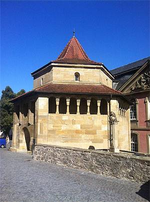 Im Obergeschoss die Michaelskapelle mit umlaufendem Arkadengang.