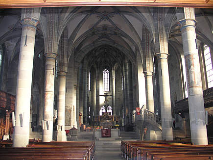 Langhaus Das Langhaus bildet eine 6jochige und dreischiffige Halle und wuurde 1427 -56 anstelle des alten romanischen Langhauses errichttet.