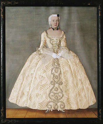 Textilbildnisse wurden unter Verwendung von Originalstoffen gefertigt und erlauben es, die Mode der Zeit genau zu rekonstruieren