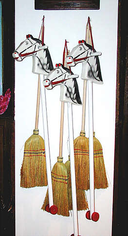 Sortiment: Steckenpferde als Kinderspielzeug, Besen