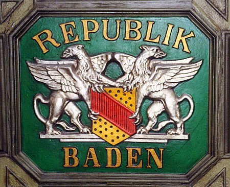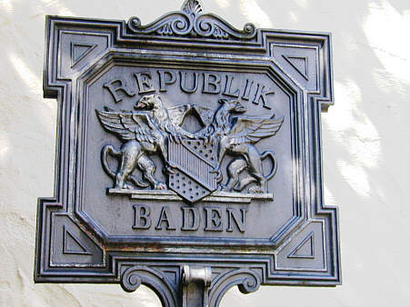 Die badischen Farben sind mit gold und rot so klassisch wie eingängig. Und die den Schild haltenden beiden Greifen sind mit zu Identifikationsfiguren geworden. Sie sind allerdings eine Zutat des großherzoglichen Hauses im 19. Jahrhundert.