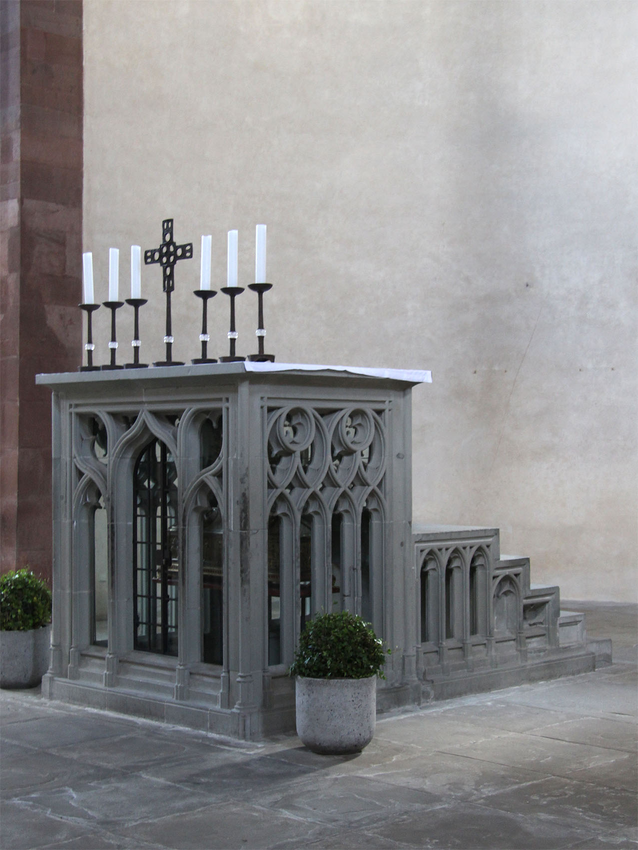 Von der Rückseite ist die Altarmensa für die Liturgie über Stufen zu erreichen.
