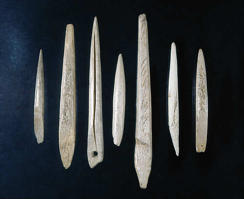 Geschossspitzen aus Rentiergeweih. Aus der Fundtsätte Kesslerloch.