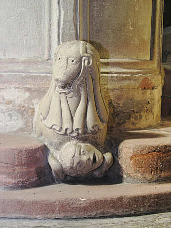 Mönch und einer Nonne (?), die auf einem Kopf ruht. |