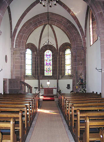 romanisch sind, verraten die Kapitelle und die Spitzbögen im Innern schon