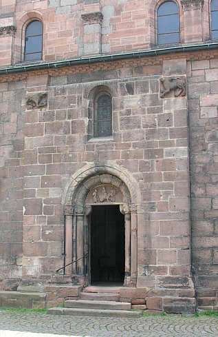 Querschiff sind Nachbildungen von Skulpturen am Wormser Dom,