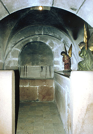 getrennt und mit einem Kreuzgewölbe aus halbrunden Rippen gewölbt.