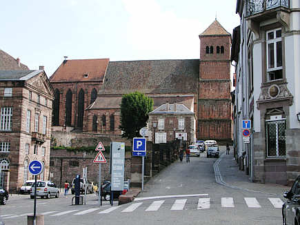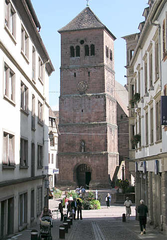 Hinter einem romanischen Glockenturm des 12. Jh. liegen das