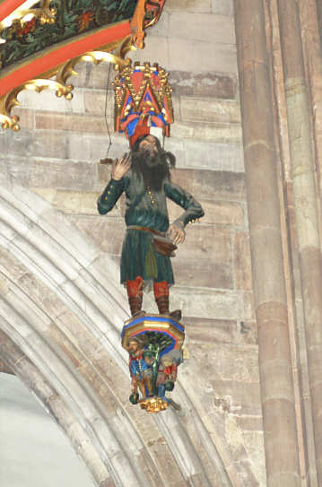 Seiten an der Wand sind die Figuren des Trompeters und des Rohraffen (alles