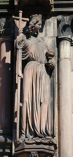 Sandsteinskulptur am linken Portalgewände, um 1225