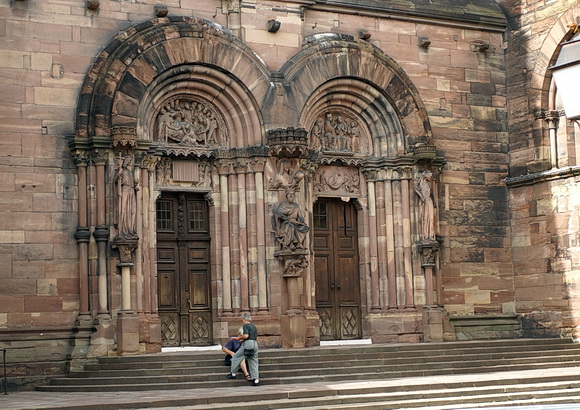 Das Portal selbst ist ein doppeltes Stufenportal,