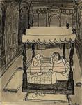 Lilliput, 1950. Tusche und Aquarell auf beigefarbenem Papier.