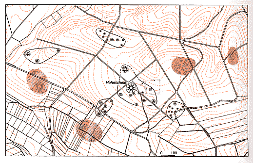 Hohmichele mit umliegenden Grabhügeln und hallstattzeitlichen