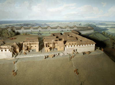 Modell der hallstattzeitlichen Siedlung mit der für Mitteleuropa einzigartigen Lehmziegelmauer