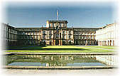 KARLSRUHE ![]() BADEN-DURLACH Markgrafen Karl Wilhelm (Neubau) und Karl Friedrich (Umbau) nach 1715; 1752-74 völlig umgebaut radiale Anlage 1943 zerstört Fassaden restauriert Badisches Landesmuseum offener Schlosspark im englischen Stil Schloss im Zentrum eines Strahlenkranzes (Länge der Strahlen max. 15,1 km) |