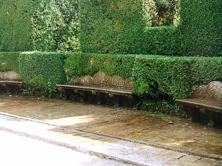 Steinerne Bänke laden im Schatten zum Ruhen ein, ...