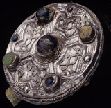 unten: Eine Scheibenfibel aus Silber, Teil eines Brustgehänges