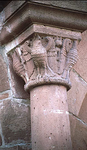 Rechteckvorlage mit eingestellter Säule und Halbsäulenvorlage im Bereich der ehem. Pfalzkapelle