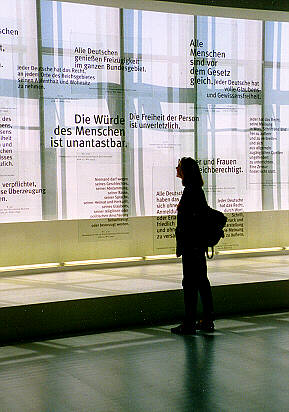Die Ausstellung greift auch multimediale Neuerungen auf, indem sie im Keller virtuelle Modelle der Paulskirche von 1848, des Reichs-tags von 1894 und des Bundestags von 1999 präsentiert - dreidimen-sional und in „Virtual reality" begehbar. Man wird gespannt sein, wie sich Schulklassen um den einen steuernden Joystick streiten.