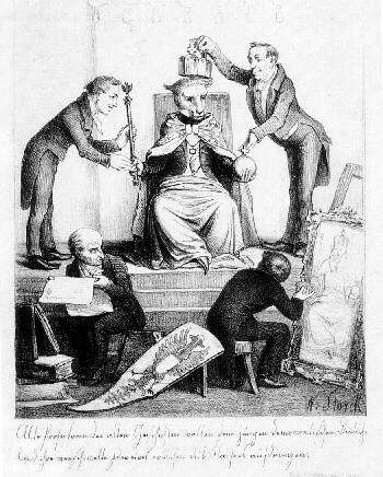 Die fortschrittliche Kräfte übten Kritik an diesem Verfassungsentwurf, wie die nebenstehende Karikatur zeigt. Er sei anachronistisch, und nur eine Republik könne die liberalen Rechte und die Souveränität des Volkes wahren. Die Spitze dieser Karikatur richtet sich aber nicht allein gegen die Idee eines Kaisertums für Deutschland, sondern auch gegen die Person des künftigen Kaisers, der eindeutigerweise als Schaf dargestellt ist. Gemeint ist zweifellos der Preußenkönig Friedrich Wilhelm IV. Es wäre aber auch zu fragen, ob er nicht auch als Wolf im Schafspelz dargestellt ist.