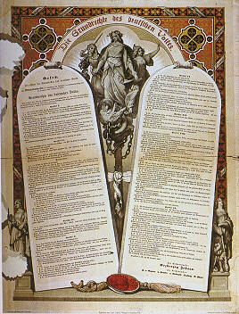 "Die Grundrechte des deutschen Volkes". Adolf Schrödter (1805-1875). Lithographie, koloriert. Butzbach, Stadtarchiv. Aus der Ausstellung "Revolution der deutschen Demokraten in Baden", Karlsruhe. Kat.-Nr. 245