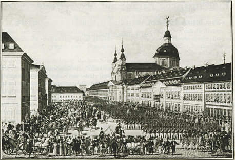 Parade auf dem Mannheimer Theaterplatz am 27. Juni 1815