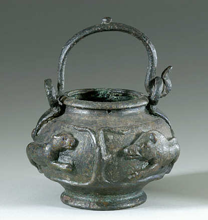 Bronzenes Salbgefäß mit Reliefdekor aus Obernburg 2. Jh. n. Chr.