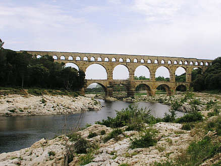 Pont du Gard besteht aus drei übereinander liegenden Bogenreihen,