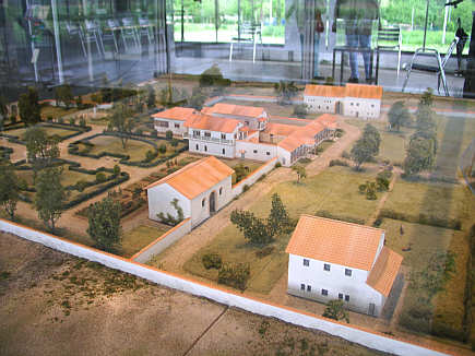 Rekonstruktionsmodell der Villa nach der jüngsten Steinbauphase, Sicht von Nordwesten (das Malteserschloss liegt rechts)