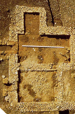 Im Boden Pfostenlöcher eines alamannischen Holzeinbaus (ca.