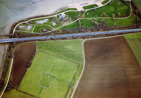 Sichtbar gemachter Mauerverlauf mit nachgezeichneten Fundamenten