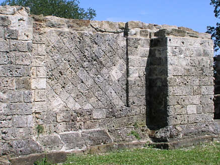 schräg gestellten Quadersteinen aus Kalktuff. Nach 35 Jahren sind erhebliche Schäden aufgetreten,