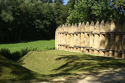 Unten: Palisade und Mauer, an leicht erreichbarer Stelle